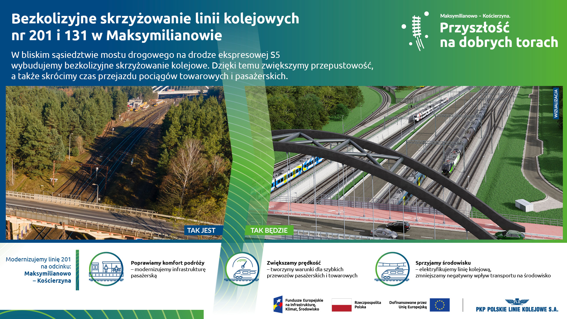 W Maksymilianowie powstanie nowe, bezkolizyjne skrzyżowanie linii kolejowych nr 201 (Nowa Wieś Wielka – Gdynia Port) oraz nr 131 (Chorzów Batory – Tczew). Obiekt zostanie zlokalizowany w bezpośrednim sąsiedztwie mostu drogowego na drodze ekspresowej S5.