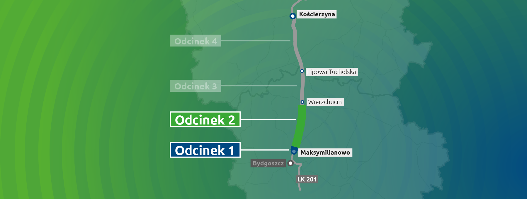 Modernizacja odcinka Maksymilianowo – Wierzchucin stanowi część większego przedsięwzięcia – przebudowy linii kolejowej nr 201 z Bydgoszczy przez Kościerzynę do Gdyni. To jeden z największych projektów realizowanych przez PKP Polskie Linie Kolejowe S.A. na północy Polski. Prace rozpoczęte w 2021 roku koncentrują się obecnie na odcinkach Kościerzyna – Somonino (oraz linii nr 214 Somonino – Kartuzy) i Somonino – Gdańsk Osowa (oraz linii nr 229 odc. Glincz – Kartuzy). Łączna wartość inwestycji na tych fragmentach przekracza 2,5 mld zł netto, a ich zakończenie prac budowlanych planowane jest do końca 2027 roku.